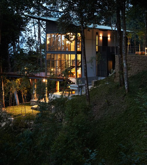 in designing homes on steep slopes with minimum disturbance to the natural landscape.